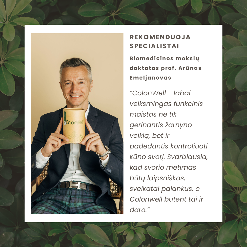 ColonWell - pagamintas Lietuvoje tik iš natūralių medžiagų. Produktas naudingas žarnyno sveikatai bei padeda numesti svorio.